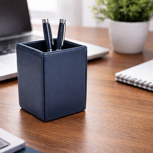 Leather Pencil Cup Blue